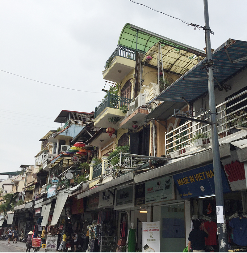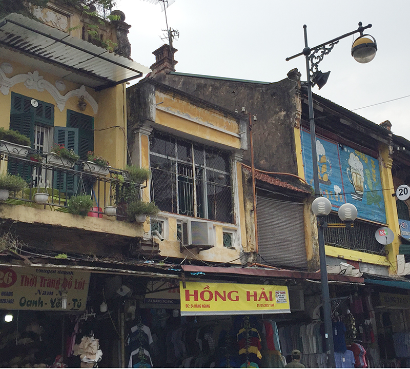 Mặt tiền thường được tận dụng để buôn bán, treo biển quảng cáo cũng gây áp lực không nhỏ lên kết cấu những căn nhà cũ.