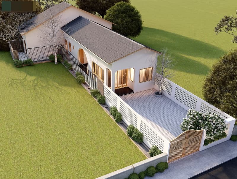 Đây là một mẫu biệt thự nhà vườn cấp 4 mái Nhật Bản khác do anh Phan Hiển thiết kế