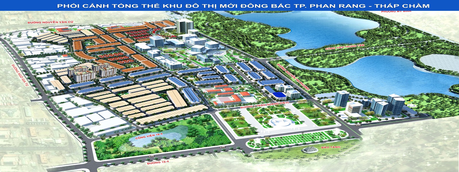 Phối cảnh tổng thể khu đô thị mới Đông Bắc (khu K1), Mỹ Bình, tp. PRTC, Ninh Thuận.