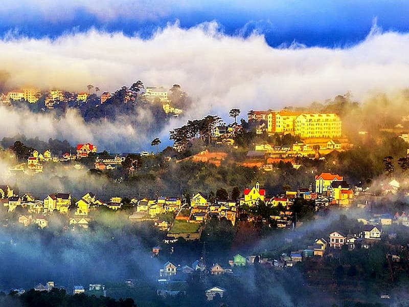 Đà Lạt – thành phố lưng đồi đánh thức bởi tiếng chuông nhà thờ Gà Trống và vút lên dáng thông bên trời xứ sở. Mưa lất phất bay qua những mái nhà rong rêu, mưa chợt đến bên gốc thông già bài ca du mục, mưa giăng qua mặt hồ vị Thiền sen súng, mưa ướt bên hiên giọt nhỏ lặng bên thềm. Đà Lạt bình minh, sương nhẹ len qua con đường Ánh Sáng, đọng trên cánh hồng một mùa thu nhỏ. Cỏ nảy lá đâm mầm chồi mới nhú xanh non!