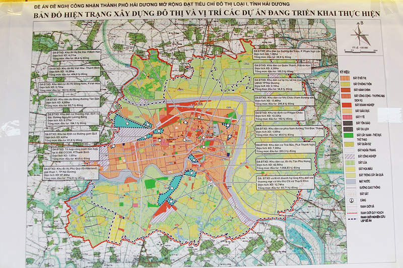 Bản đồ hiện trạng xây dựng đô thị và vị trí các dự án đang triển khai thực hiện tại thành phố Hải Dương.
