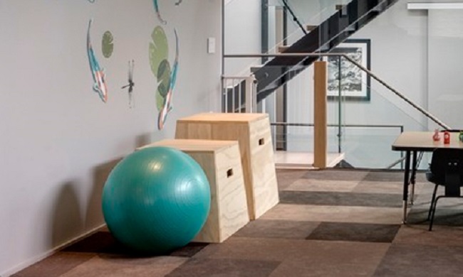 Trái bóng tập thường được để trên sàn của các phòng tập, hộ gia đình ở các nước khác.